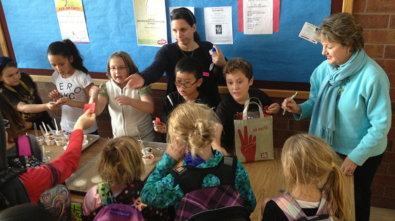 Fourth grade students selling sundaes to raise funds for their Wheels of Hope project for Whirlwind Wheelchair