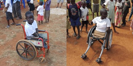 Fatuma before and after receiving her new RoughRider Wheelchair in Masake, Uganda