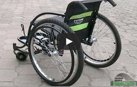This is a Spanish language video made in Columbia, South America, showing the Whirlwind RoughRider, known there as the TOTEM (Todo Tereno Movilidad). The riders in this video are very experienced and have exceptional control of their wheelchairs. Whirlwind does not recommend reckless driving!